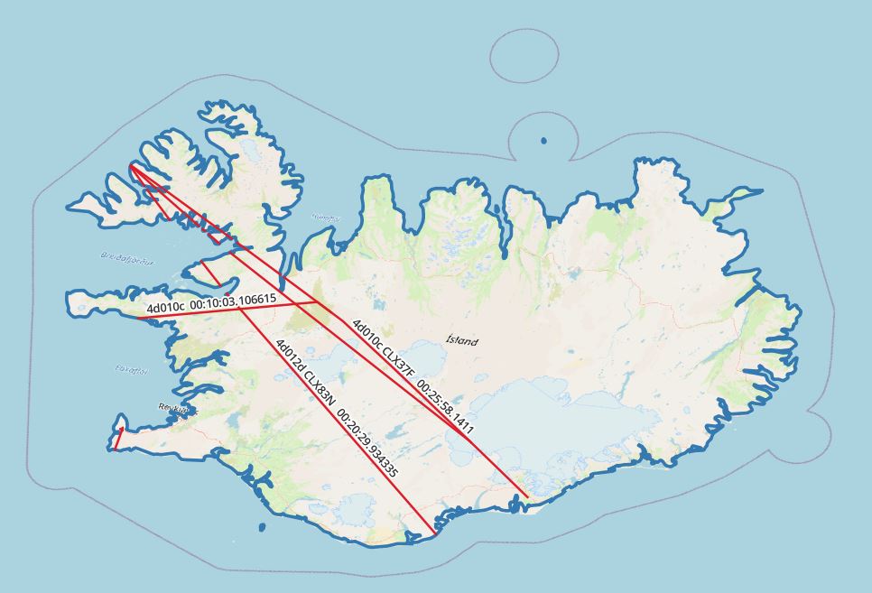 Finally, we can create our trajectories by aggregating locations by icao24 and callsign ordered by time.