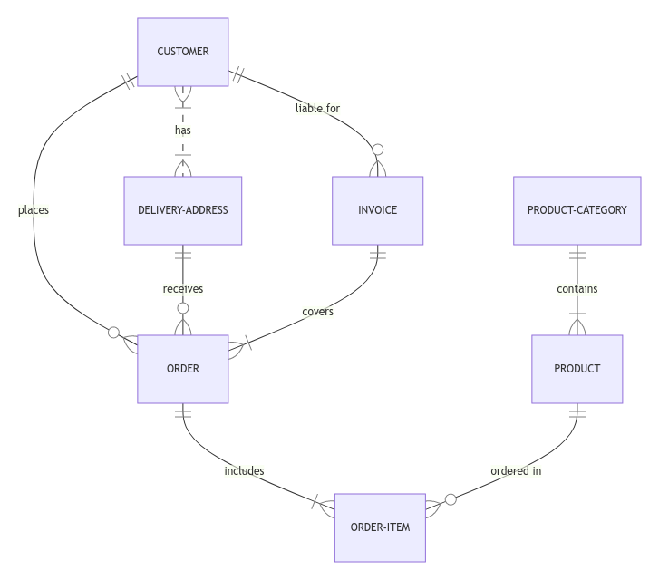 The task is to create an SQL script which will output valid Mermaid syntax. Later we can use either Mermaid Live Editor or a local installation to view and save the ER diagram in one of the preferred formats, e.g. .svg, .png, etc.
