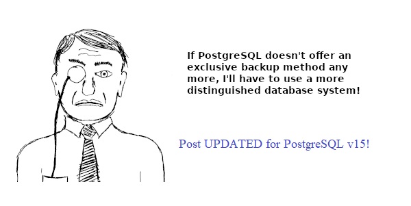 UPDATE 12.07.2022: The “exclusive backup” method of calling pg_start_backup('label')