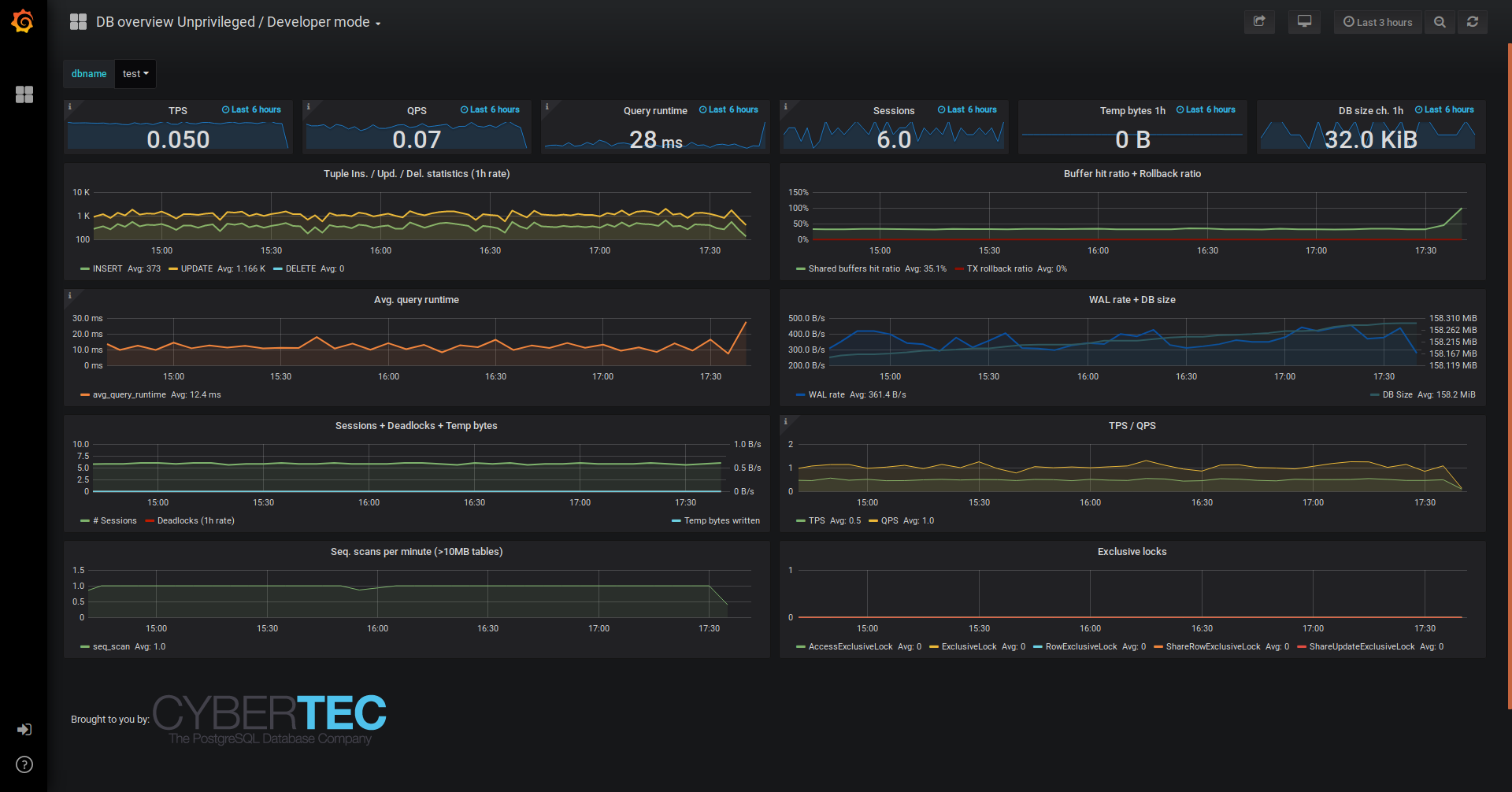 For those quick troubleshooting sessions for a shorter period, with which you really don't want to spend too much time on setting up something temporary, we've added a flag / env. variable to start monitoring based on a standard JDBC connect string input. This works especially well for superusers as all needed "helper functions" will be then created automatically. NB! Unprivileged users might also want to add the PW2_ADHOC_CONFIG=unprivileged env. variable to below sample and also start with the according "DB overview - Unprivileged" dashboard. See here for more.