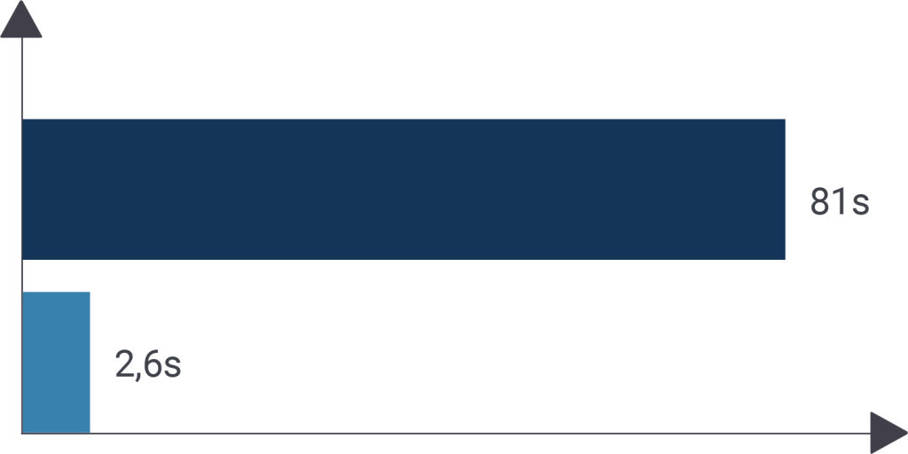 As you can see, the entire thing is a lot faster. 81 seconds vs. 59 seconds and 2.6 vs. 0.6 seconds. The difference is massive.