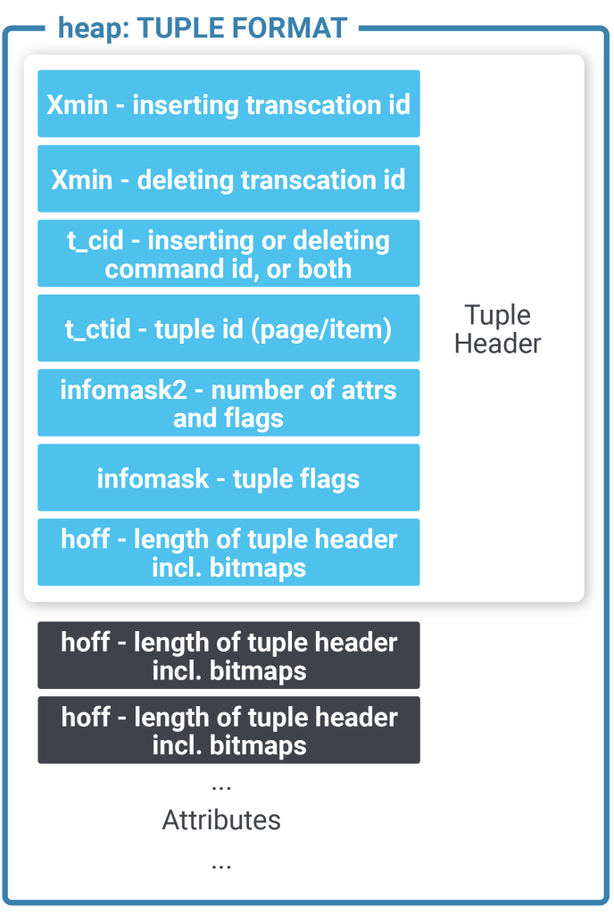 Here is what a standard PostgreSQL tuple header looks like: